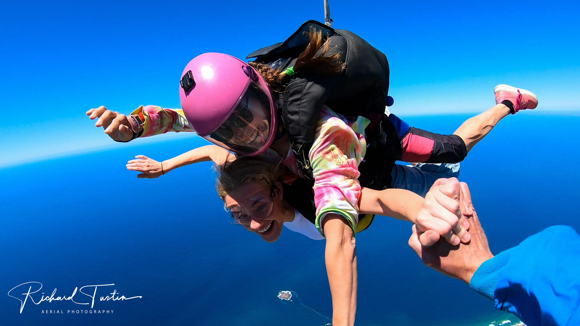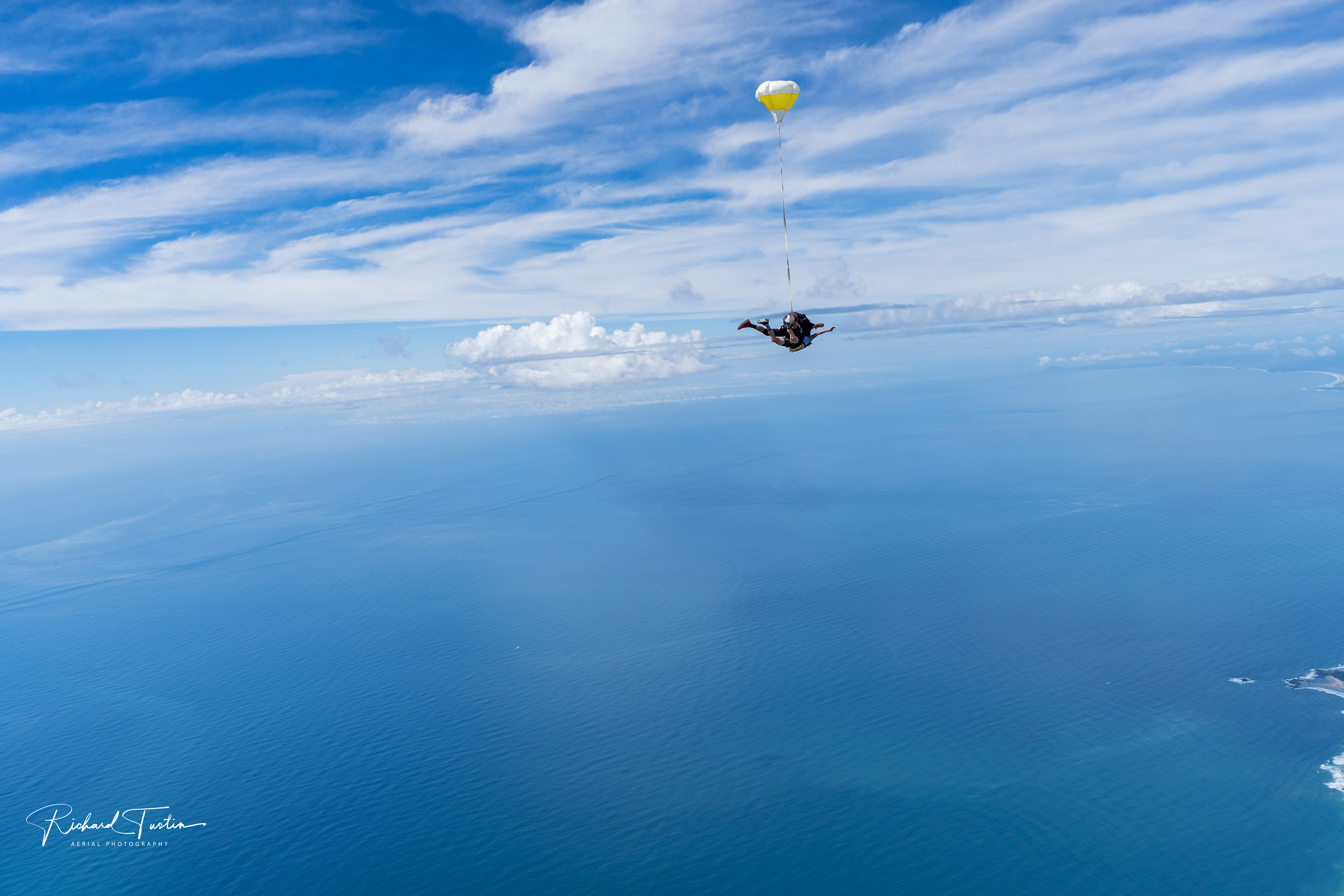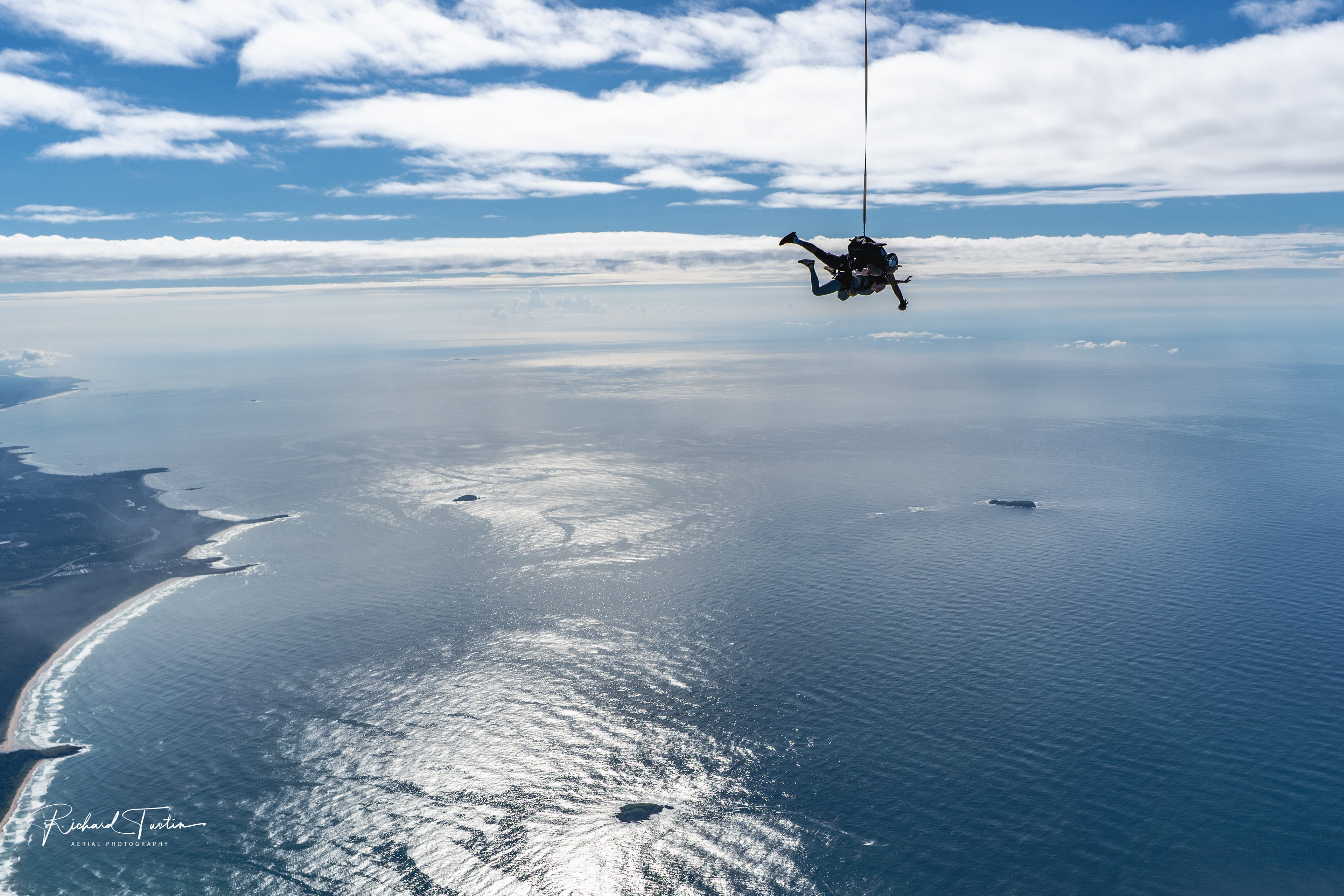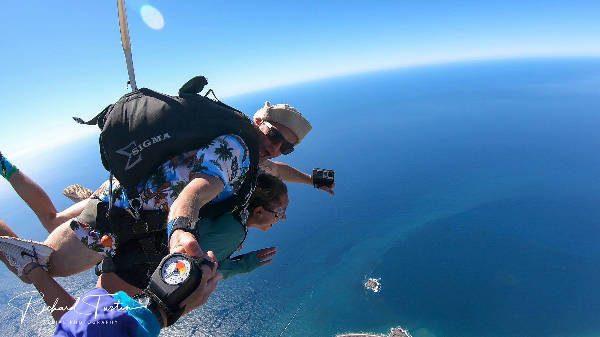 The thrill of the first jump. One of the most beautiful areas to skydive in the world with beach landings (I have experienced freecall in 7 countries all over the world and this rates as number 1).