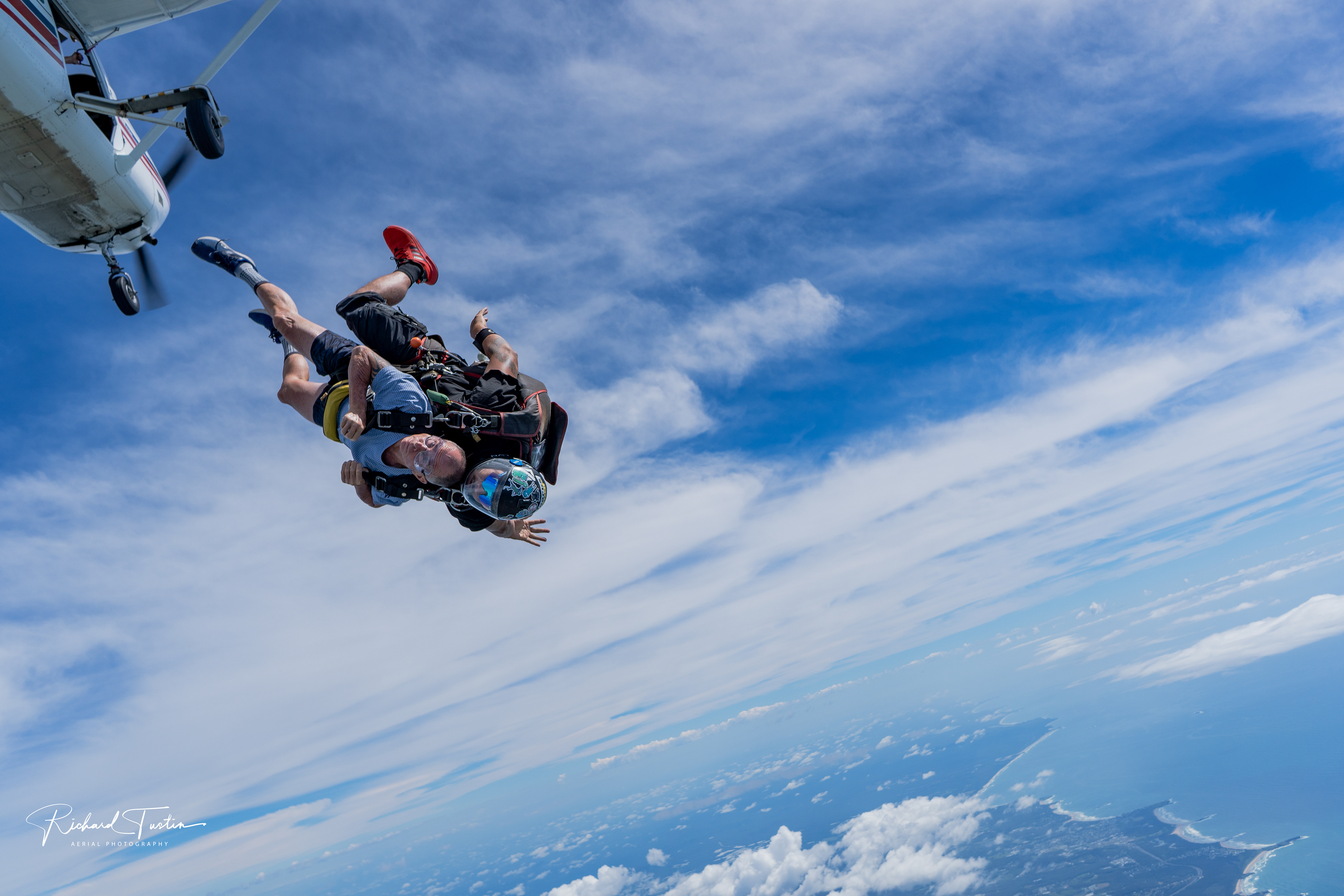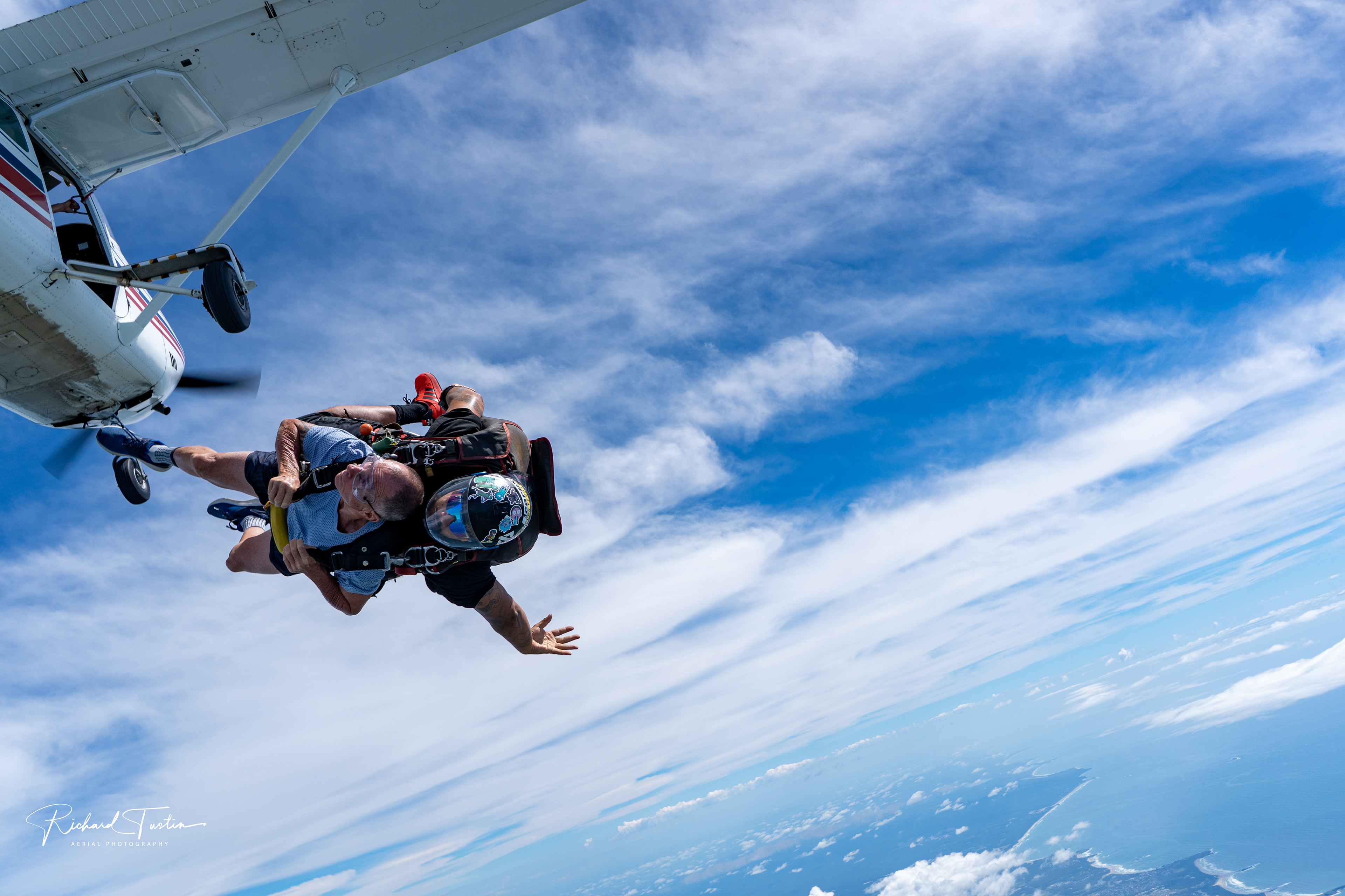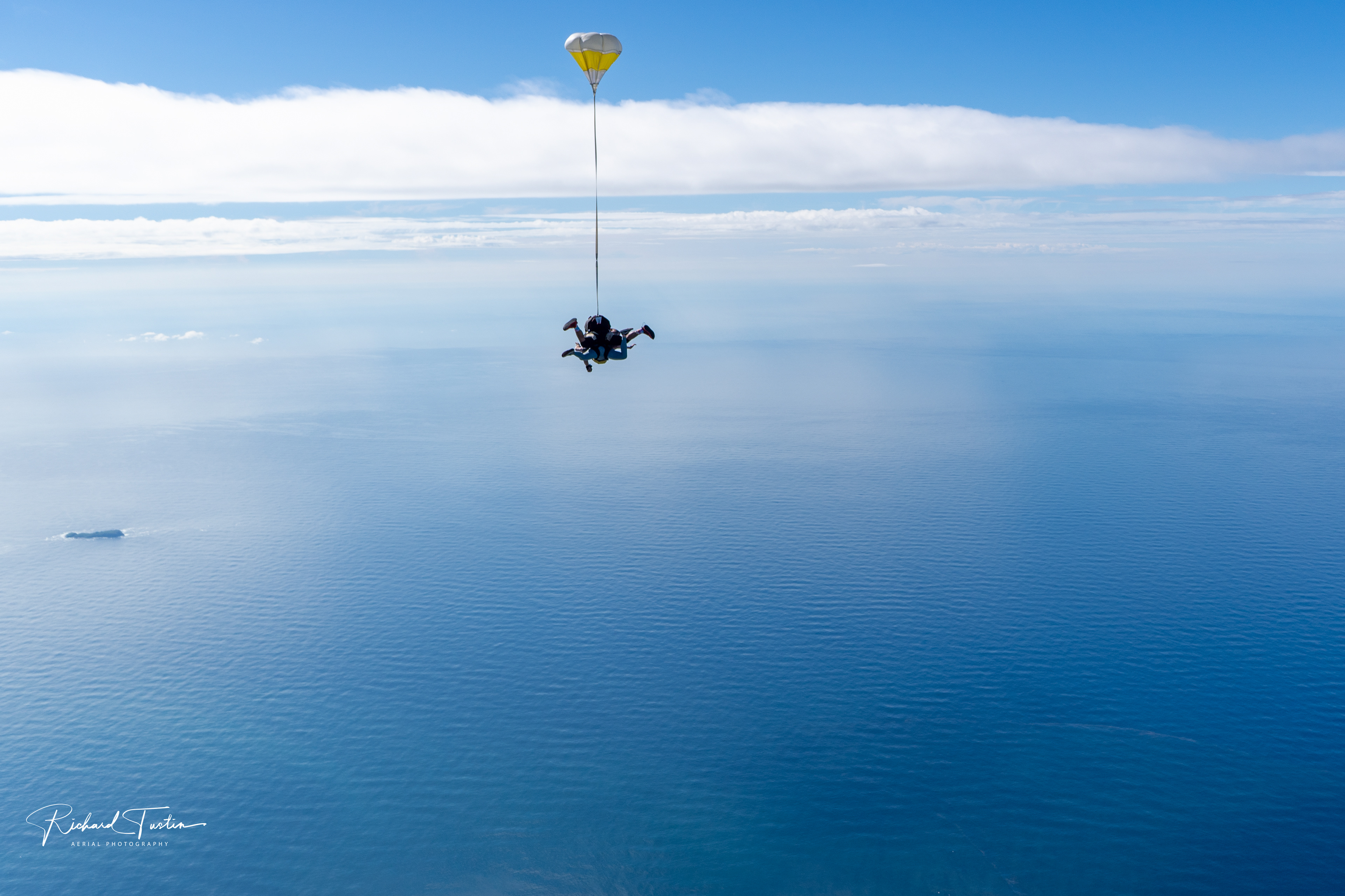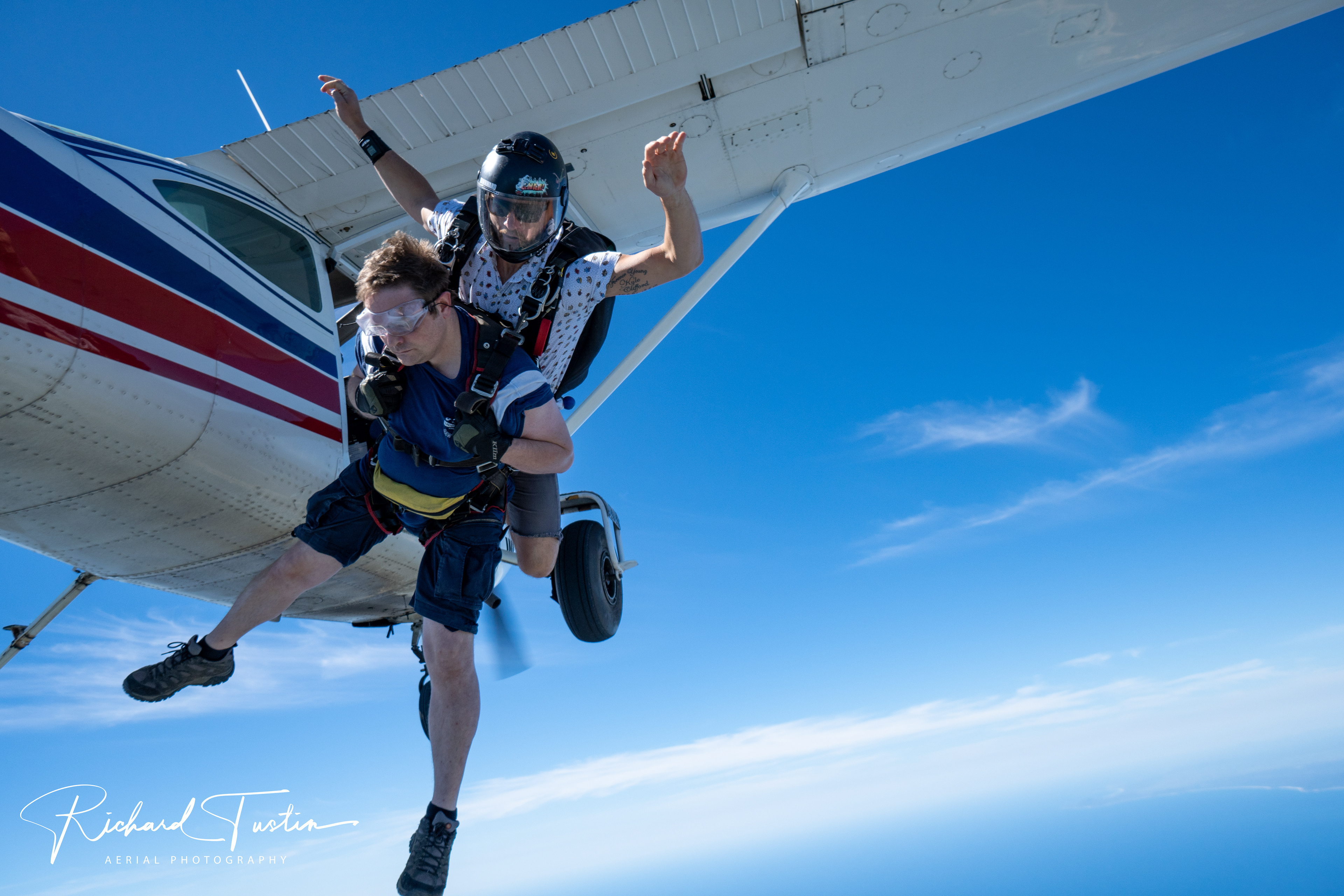 The thrill of the first jump. One of the most beautiful areas to skydive in the world with beach landings (I have experienced freecall in 7 countries all over the world and this rates as number 1).