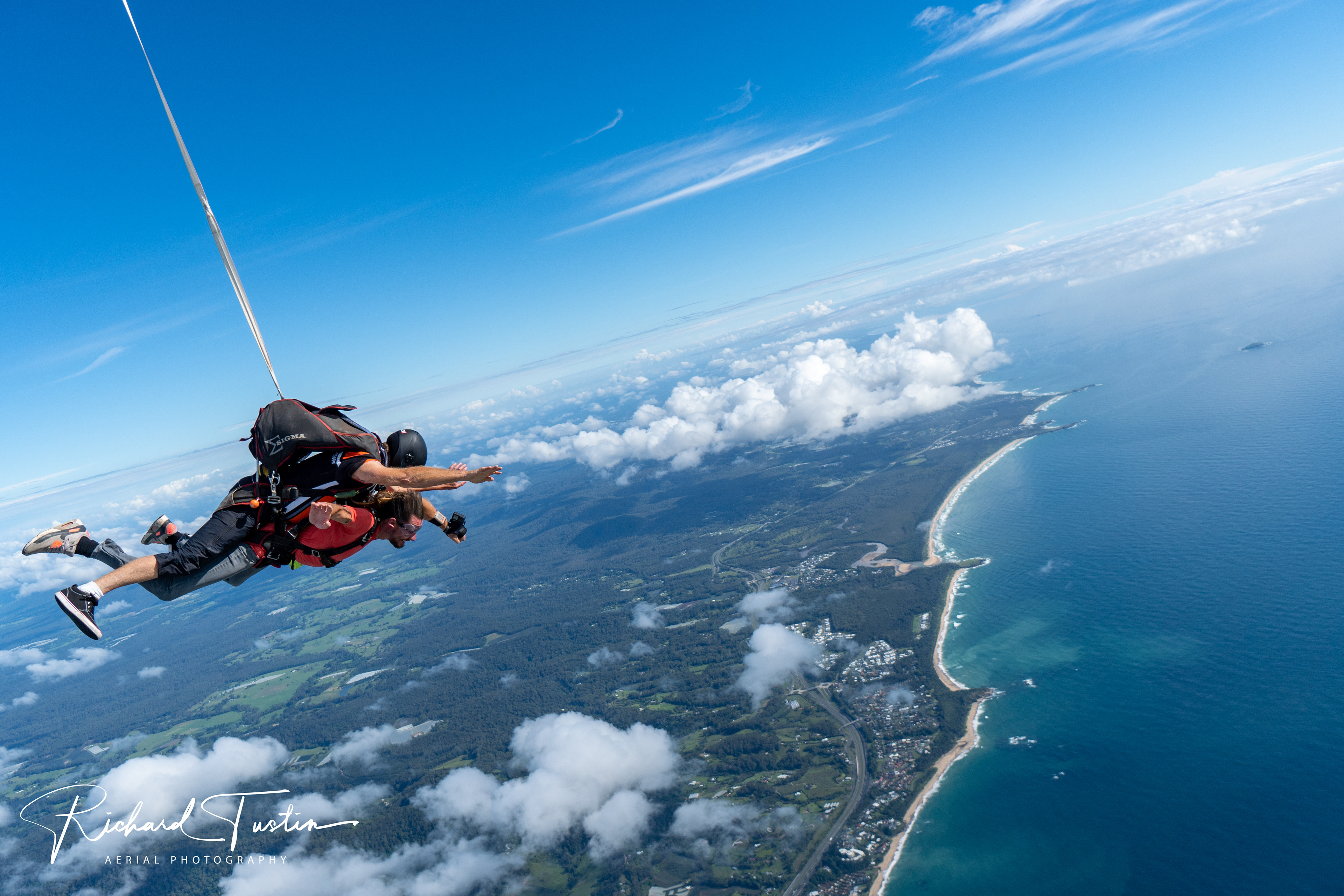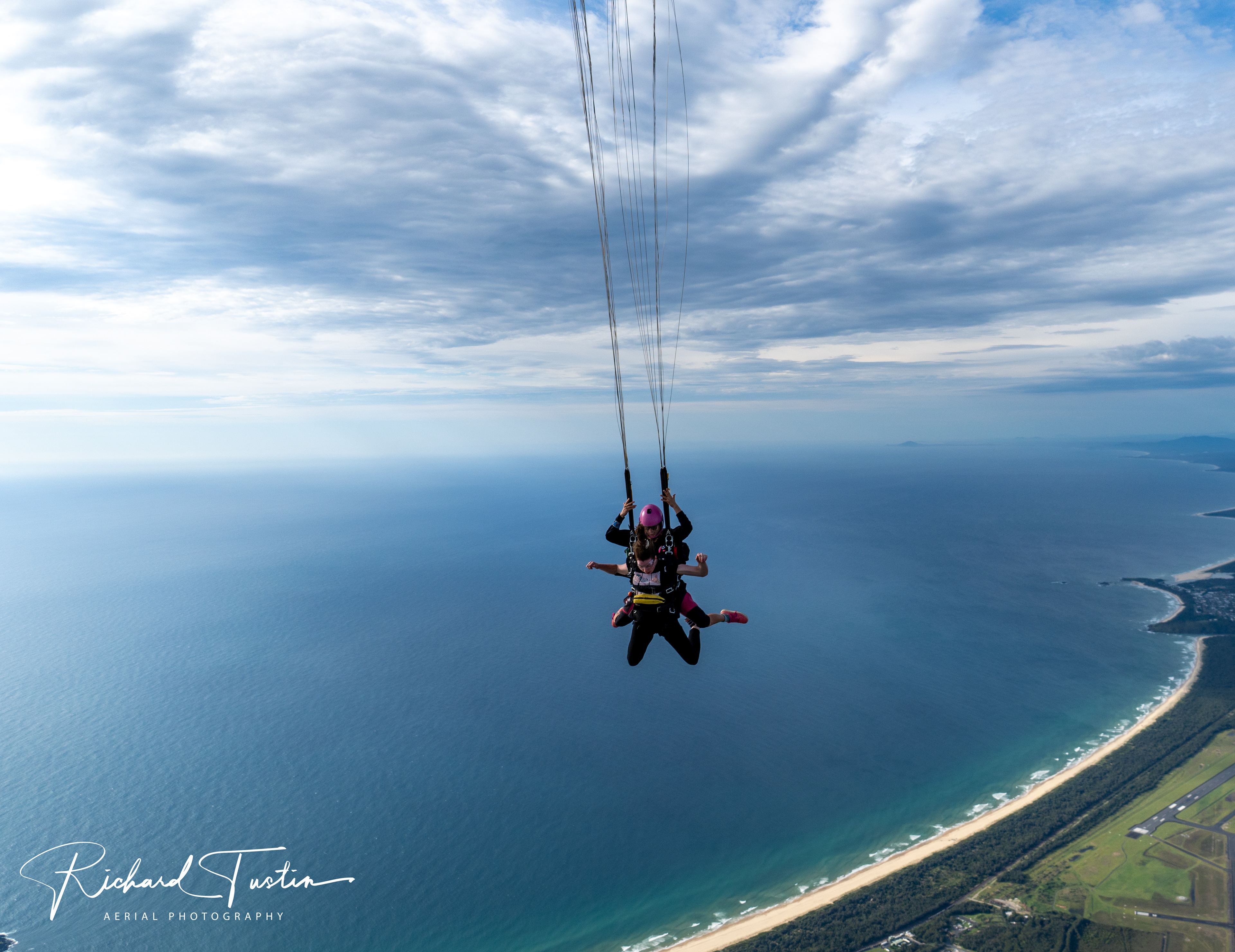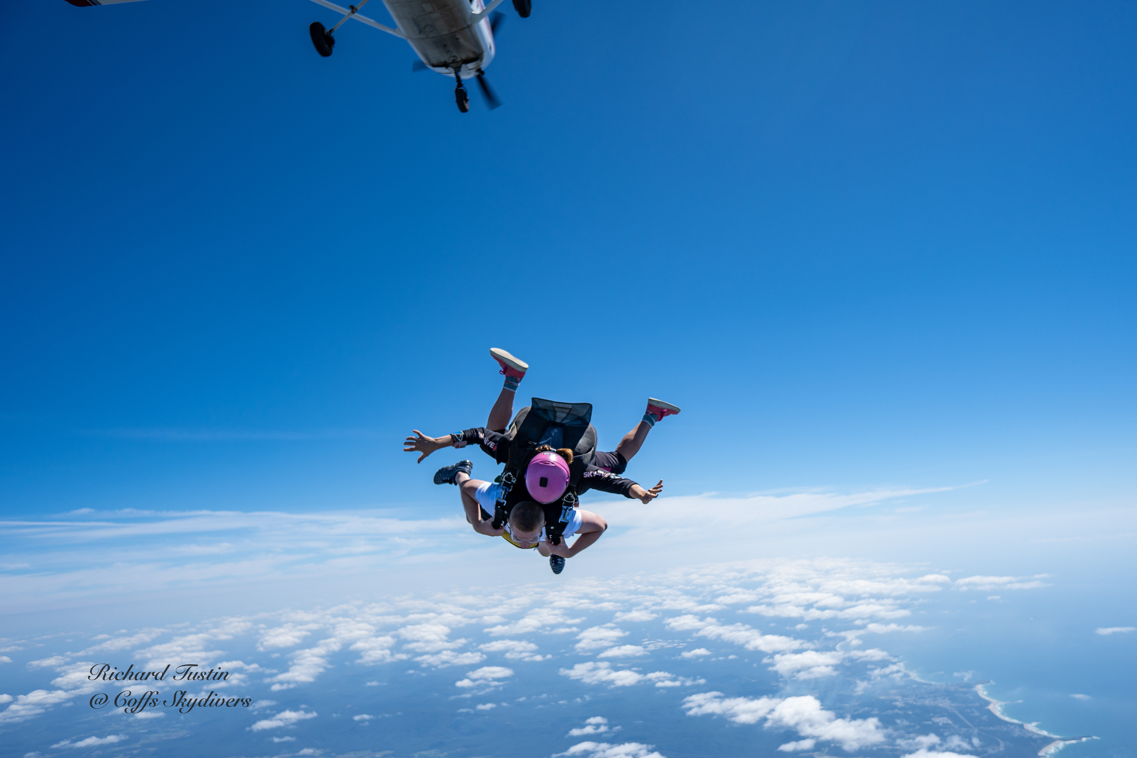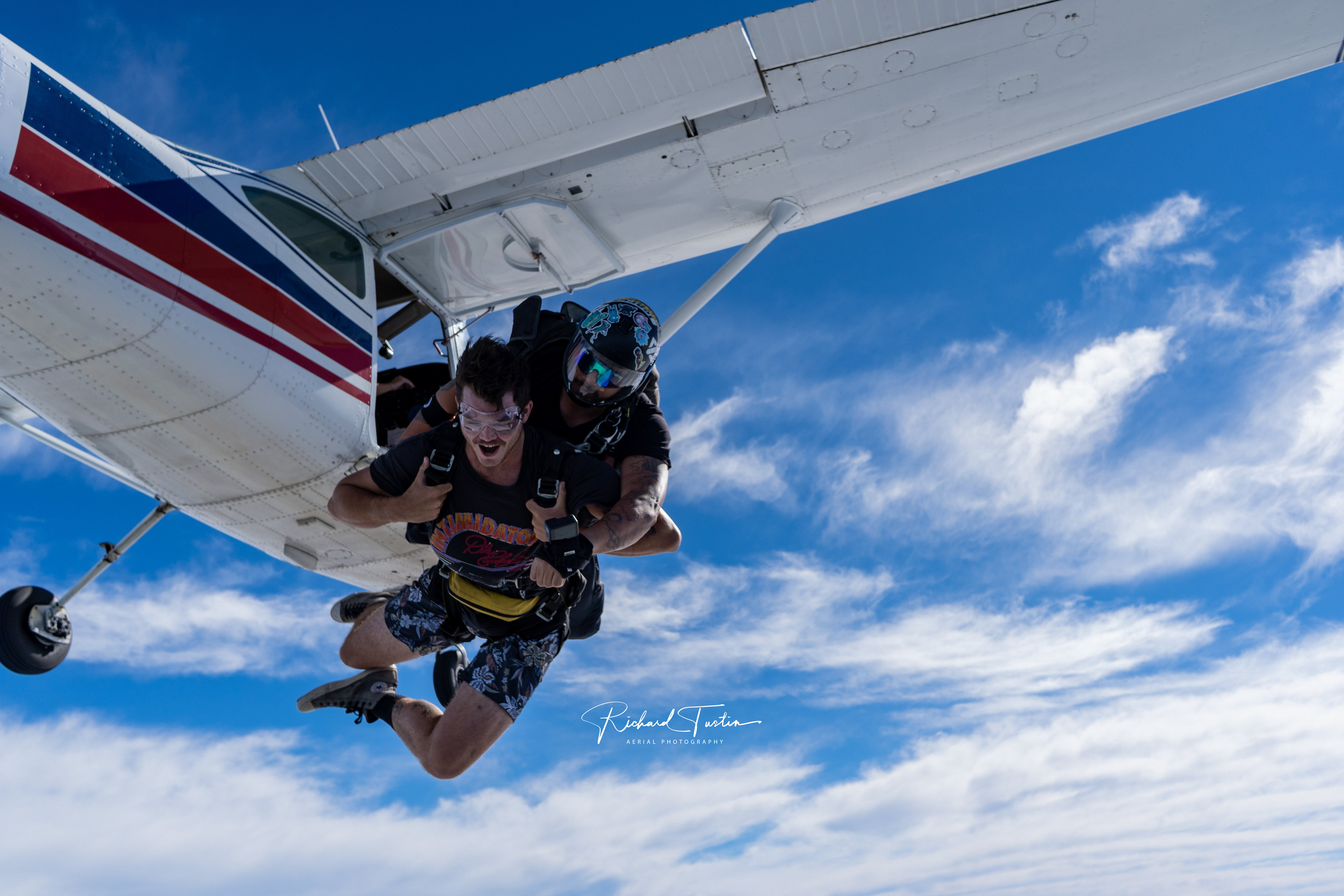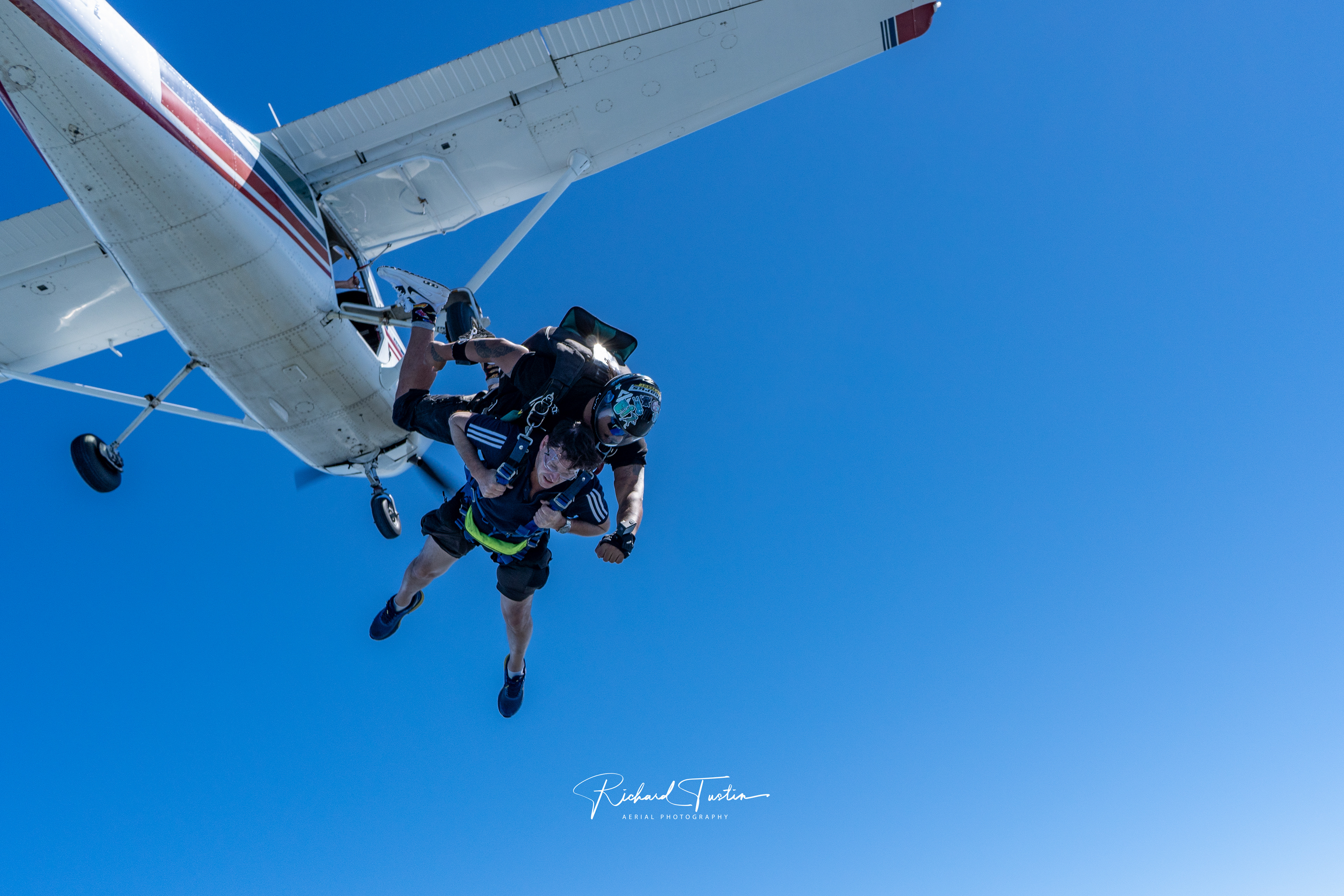 The thrill of the first jump. One of the most beautiful areas to skydive in the world with beach landings (I have experienced freecall in 7 countries all over the world and this rates as number 1).