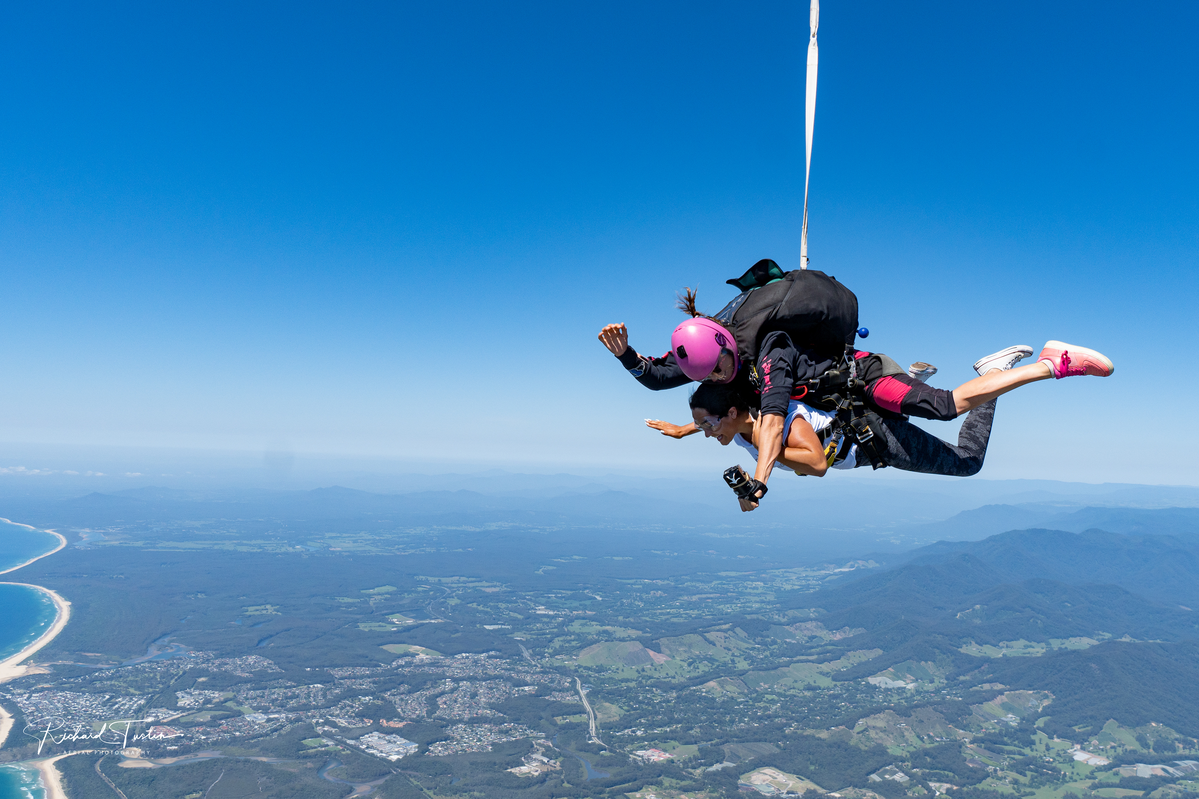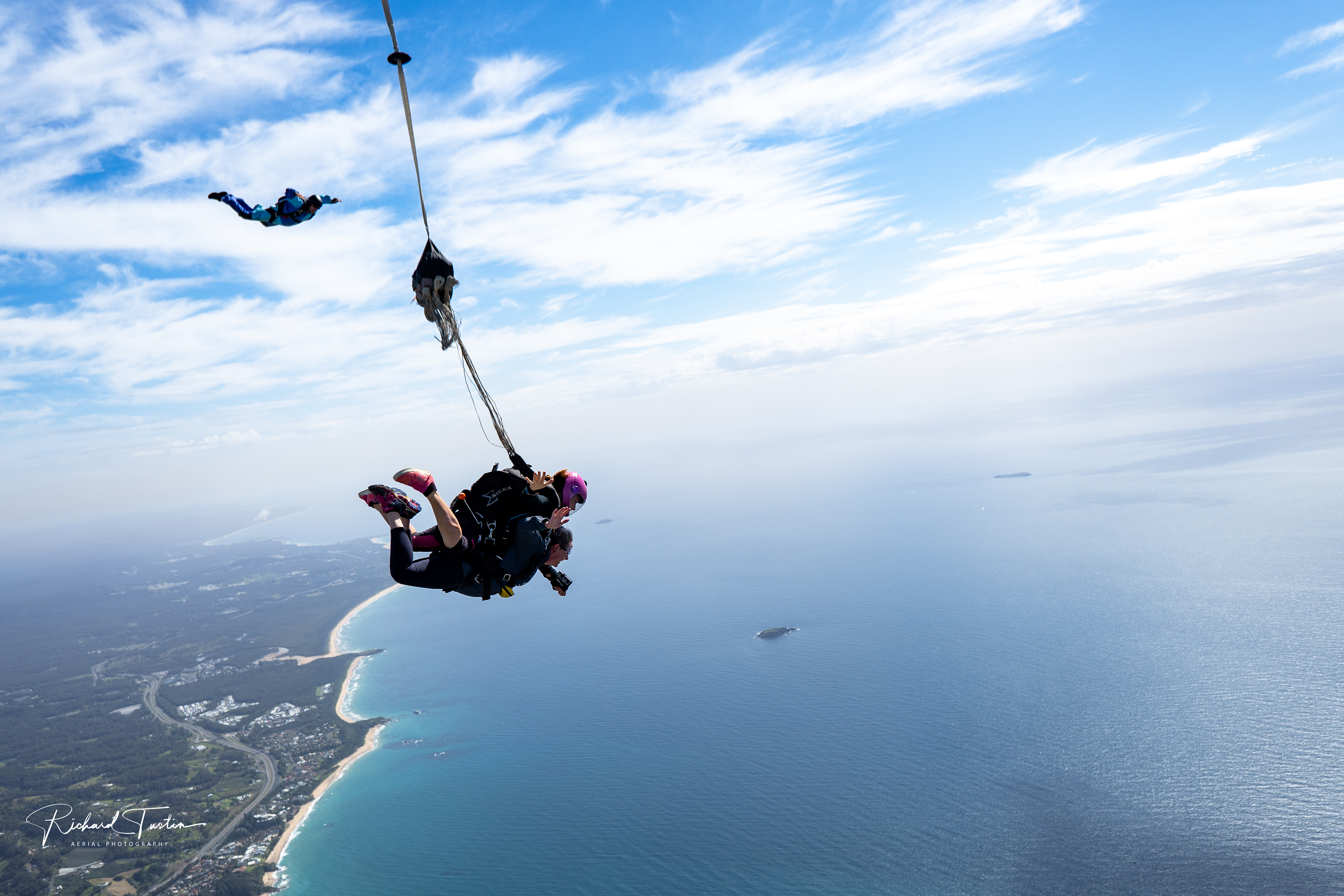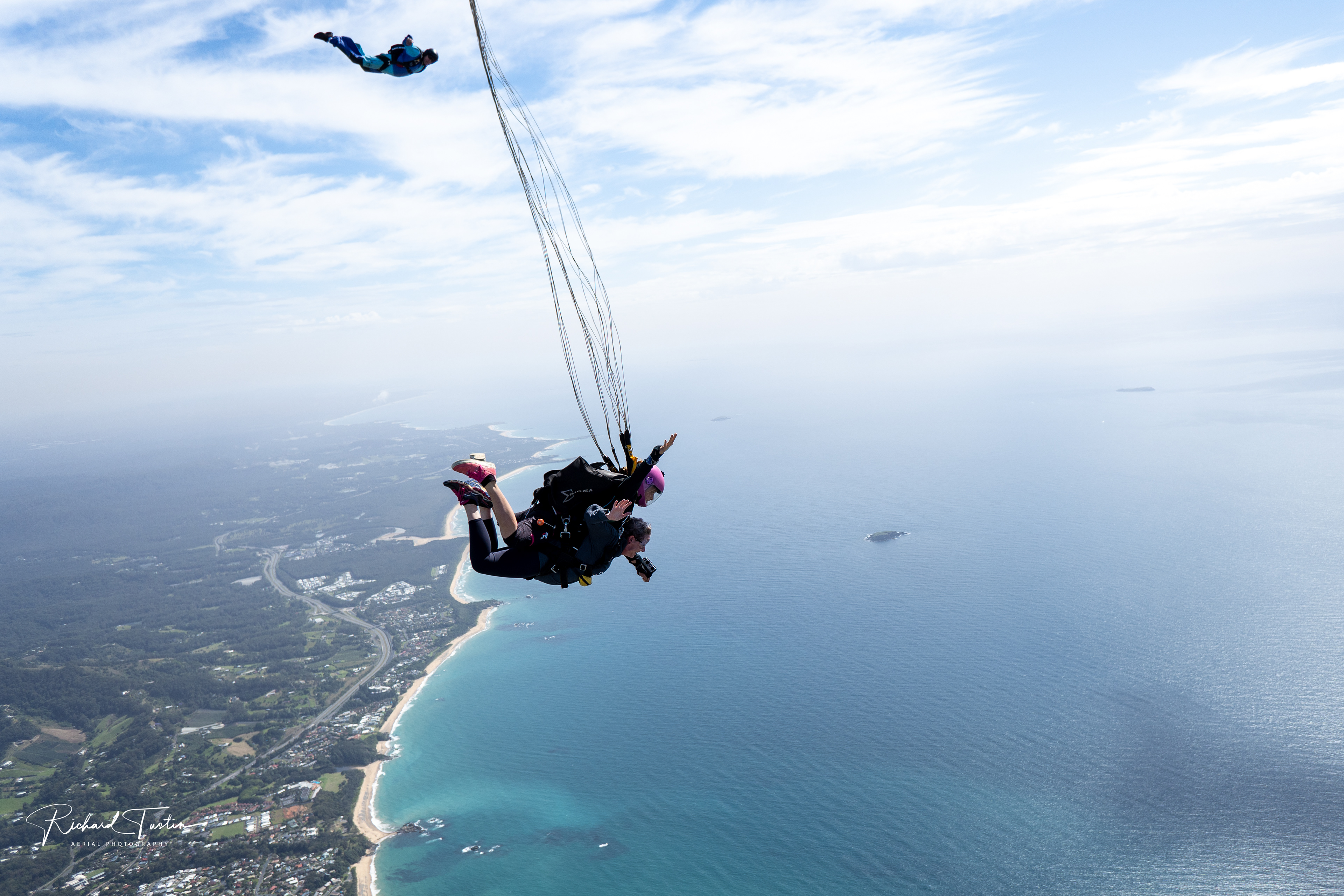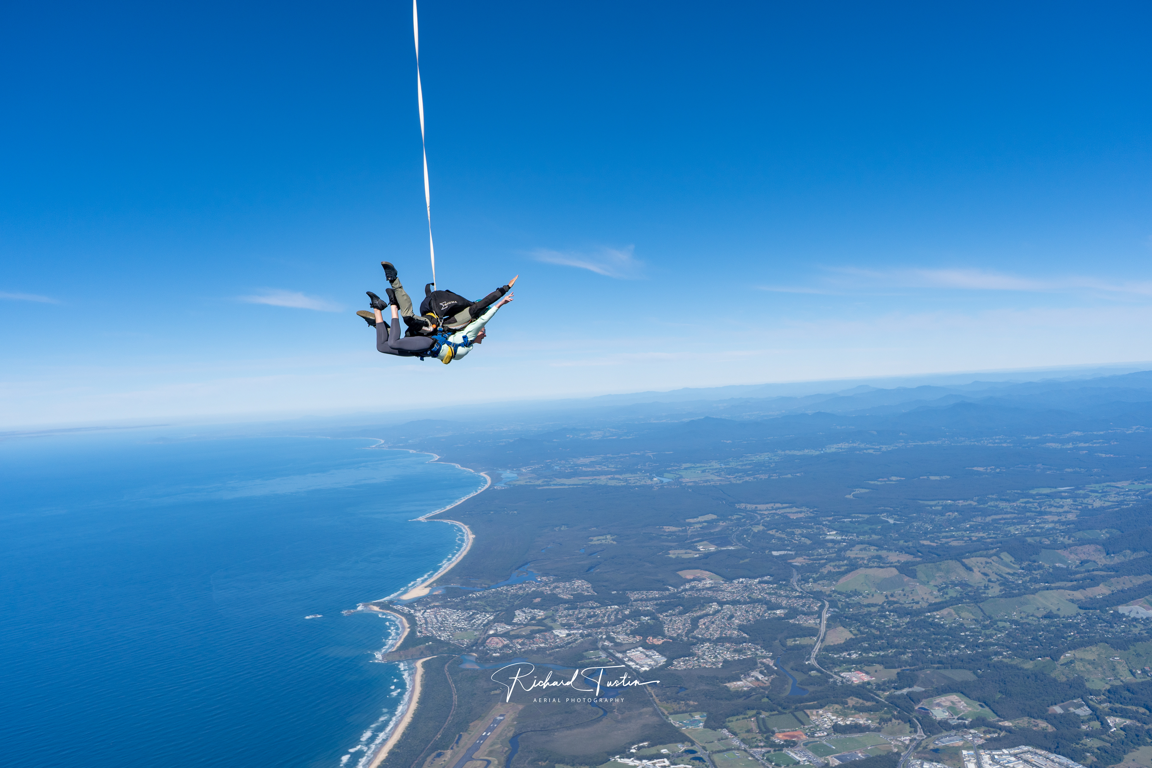 The thrill of the first jump. One of the most beautiful areas to skydive in the world with beach landings (I have experienced freecall in 7 countries all over the world and this rates as number 1).