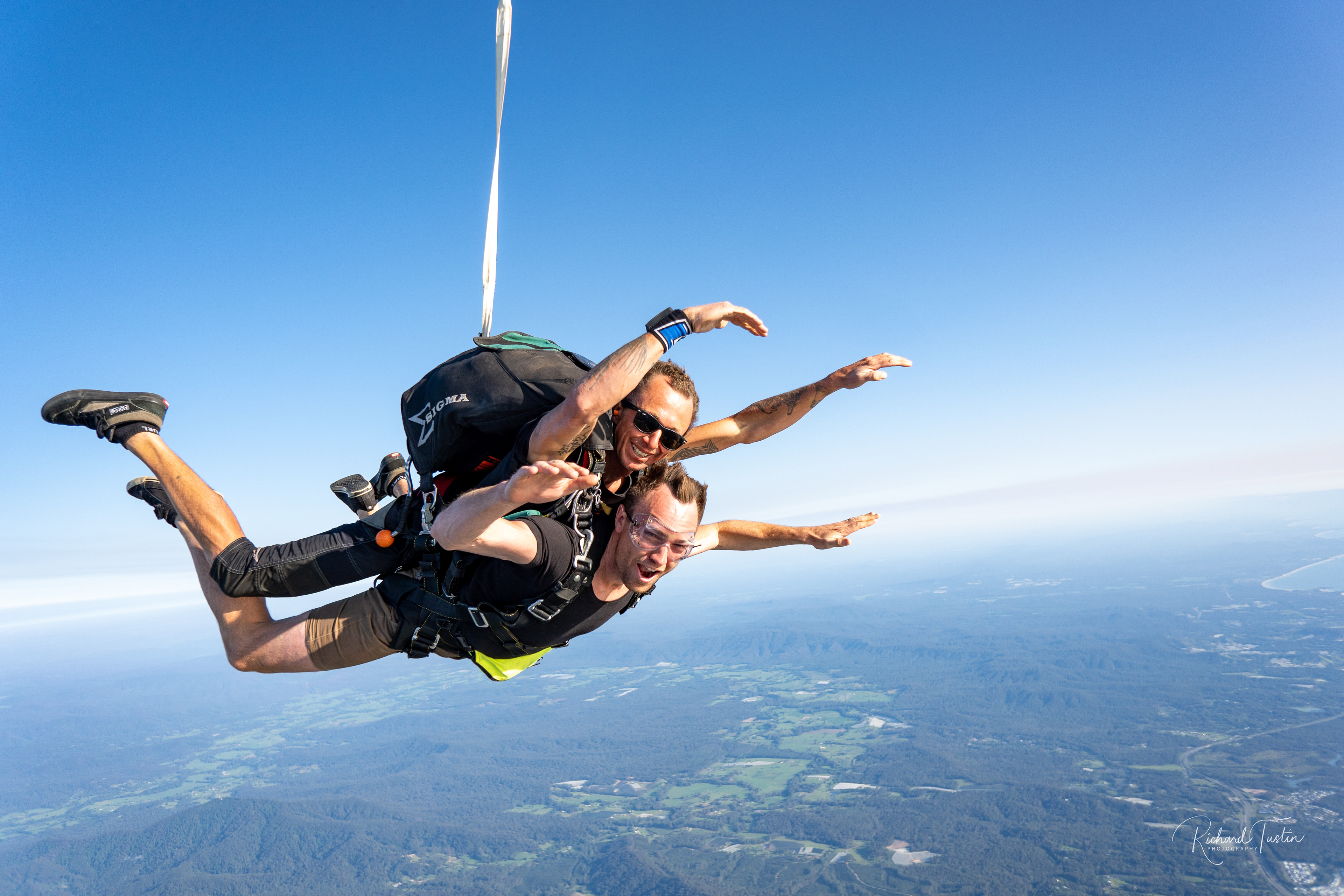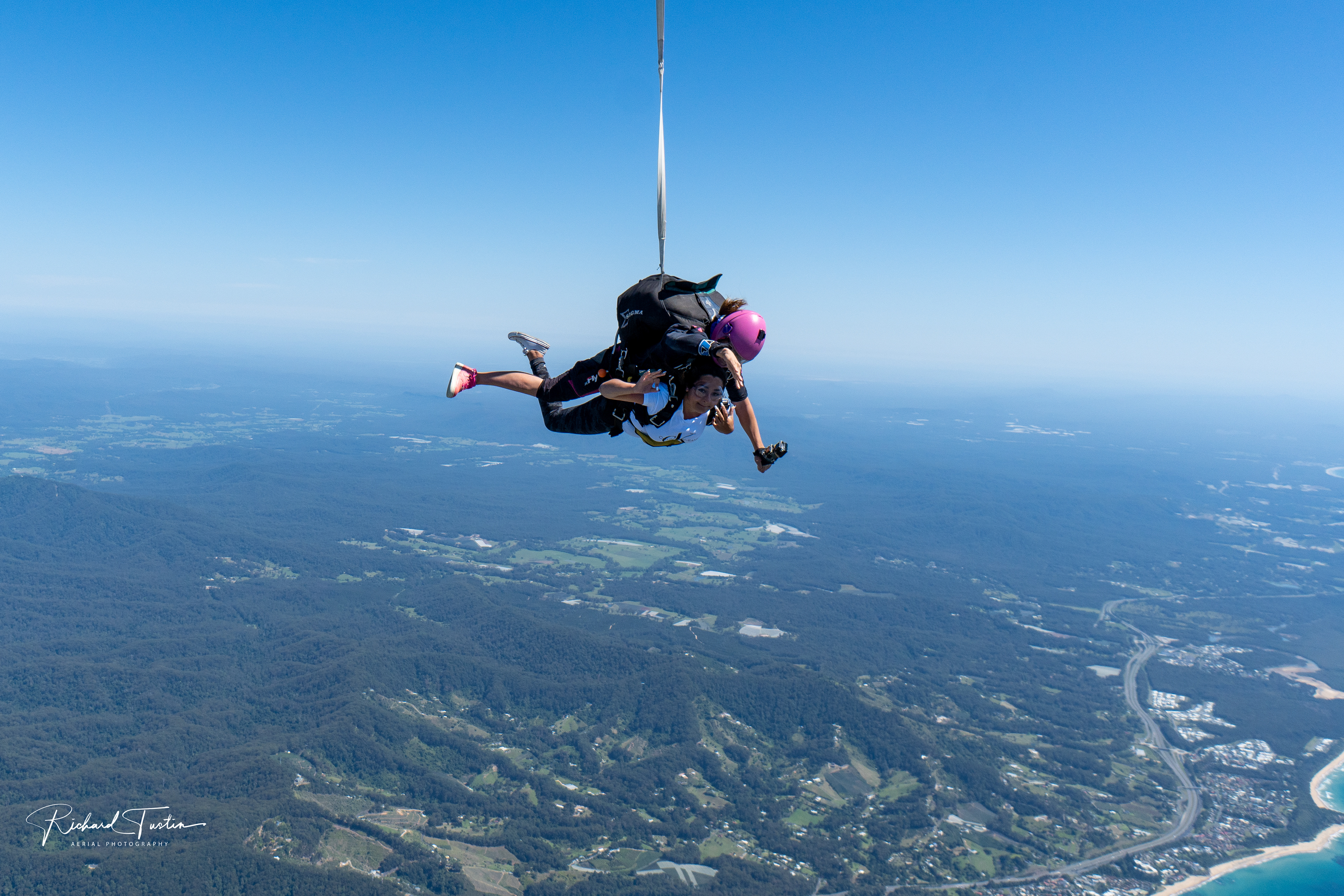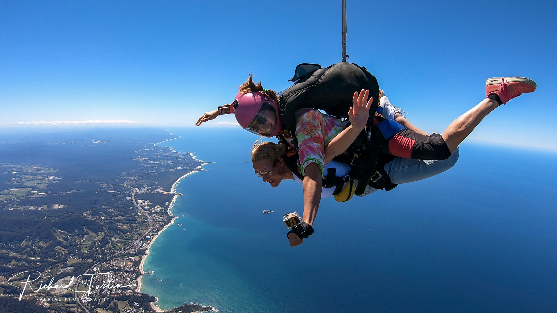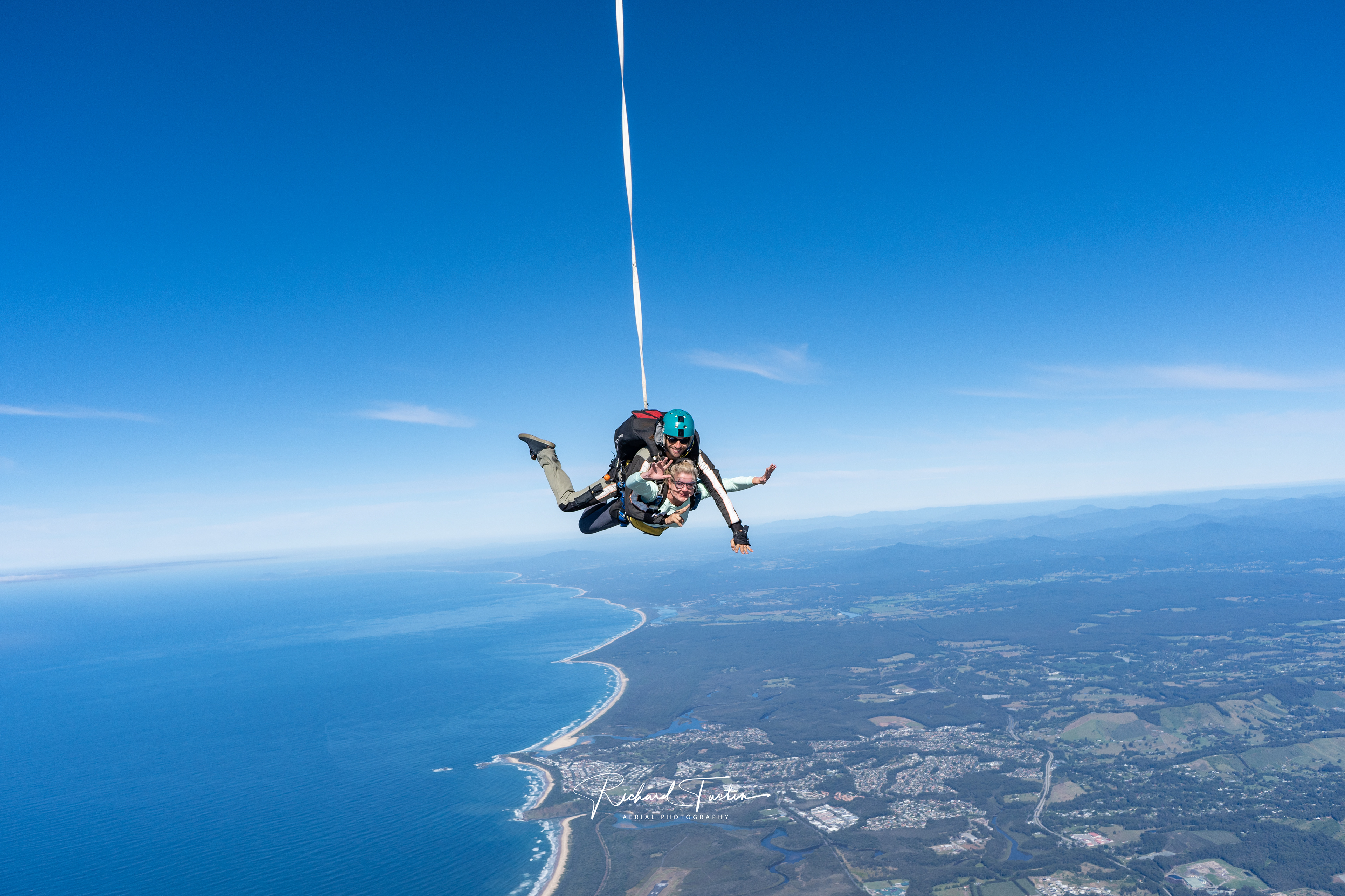 The thrill of the first jump. One of the most beautiful areas to skydive in the world with beach landings (I have experienced freecall in 7 countries all over the world and this rates as number 1).